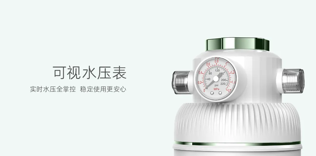 水壓是確保凈水機正常運作和出水的重要指標,可視水壓表實時顯示水壓,如遇設備異常時也能及時用于監測排查,為穩定運行多加一重保障。