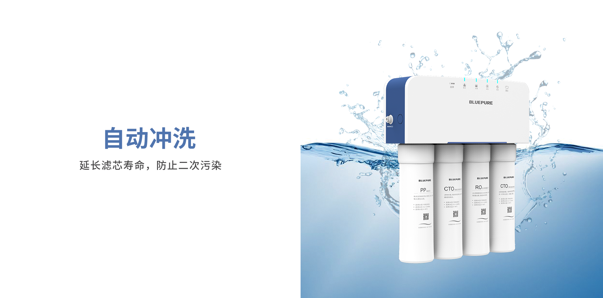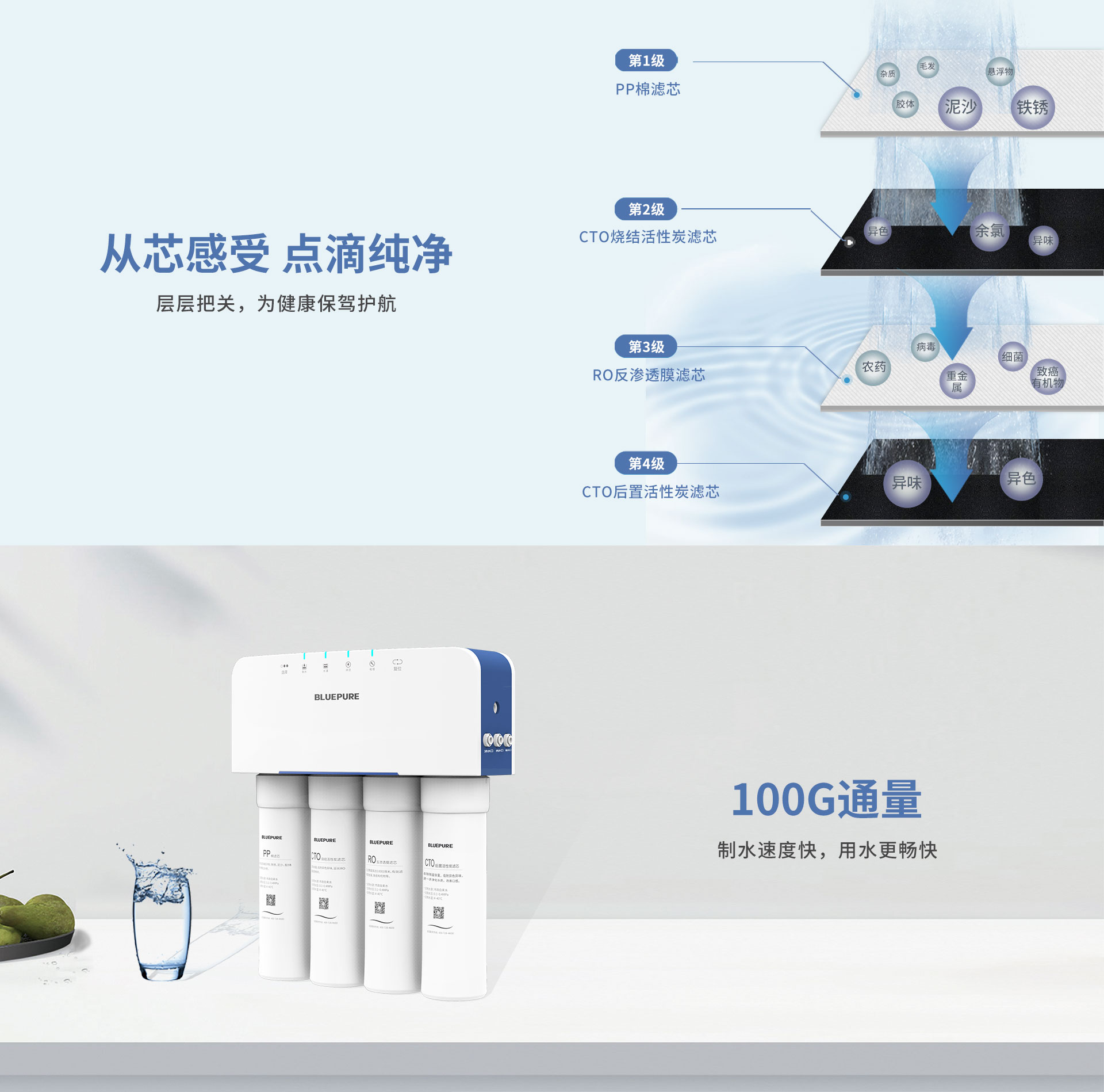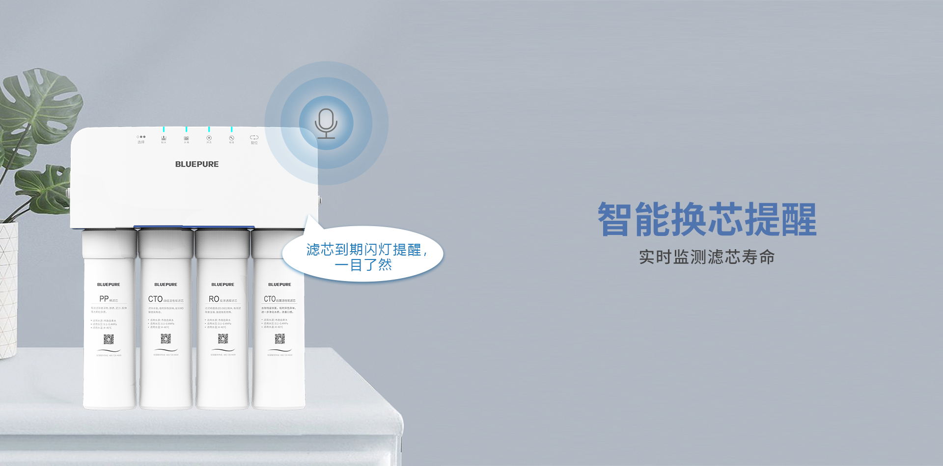 精致小巧、一體式集成水路、換芯提醒
