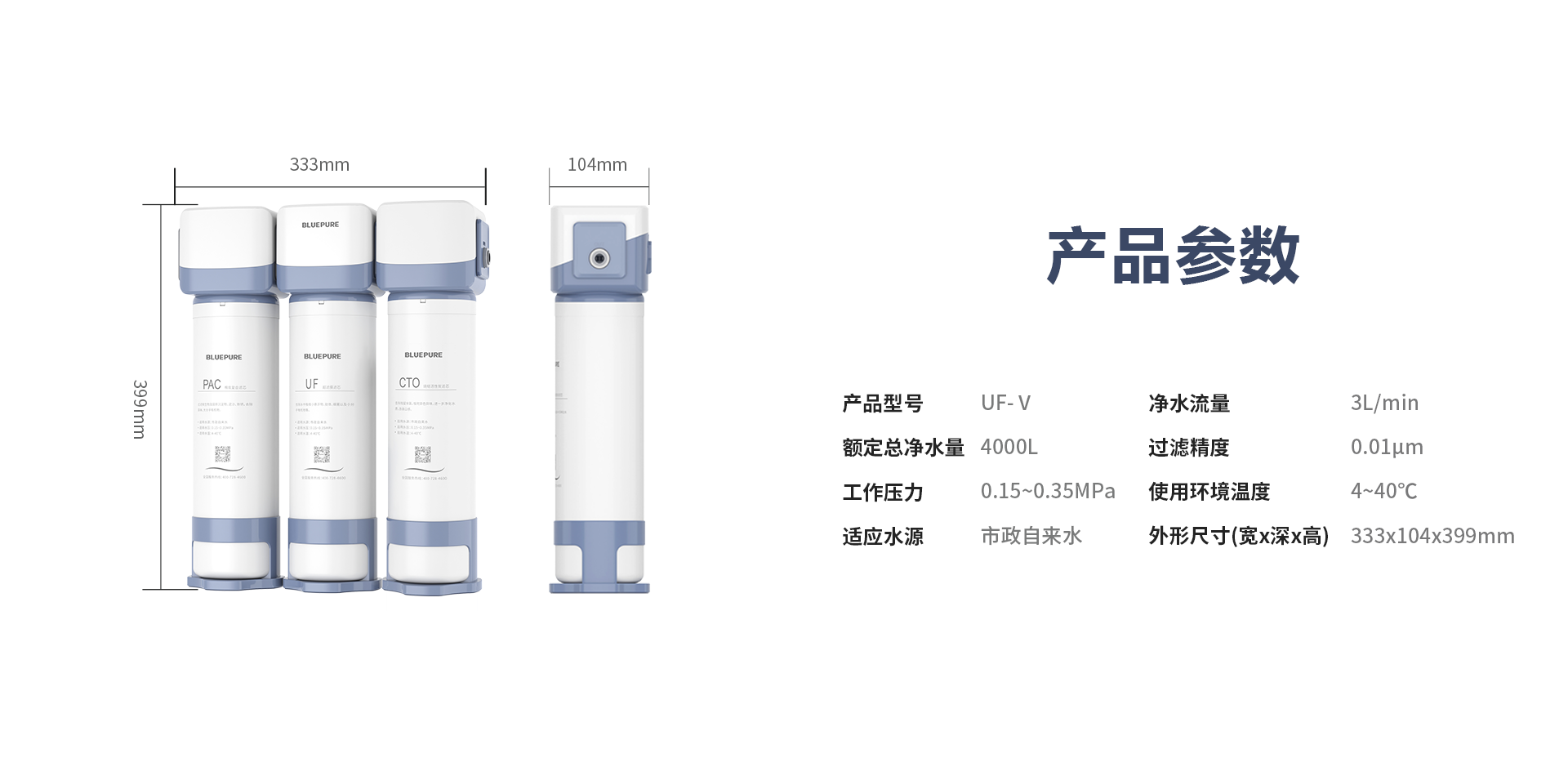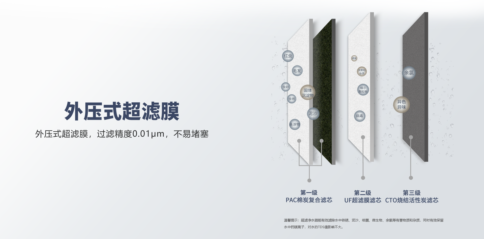 外壓式超濾膜、一體式集成水路、自動鎖水