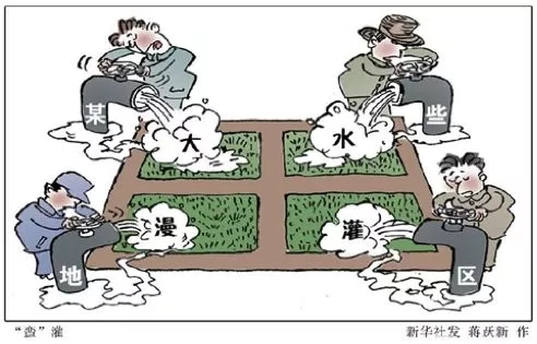 大水漫灌澆地時,需要把整個田間都放滿水。其實澆地的目的是讓莊稼根部獲得和保持必需的水量,澆其余地方完全沒有必要,造成水的浪費。