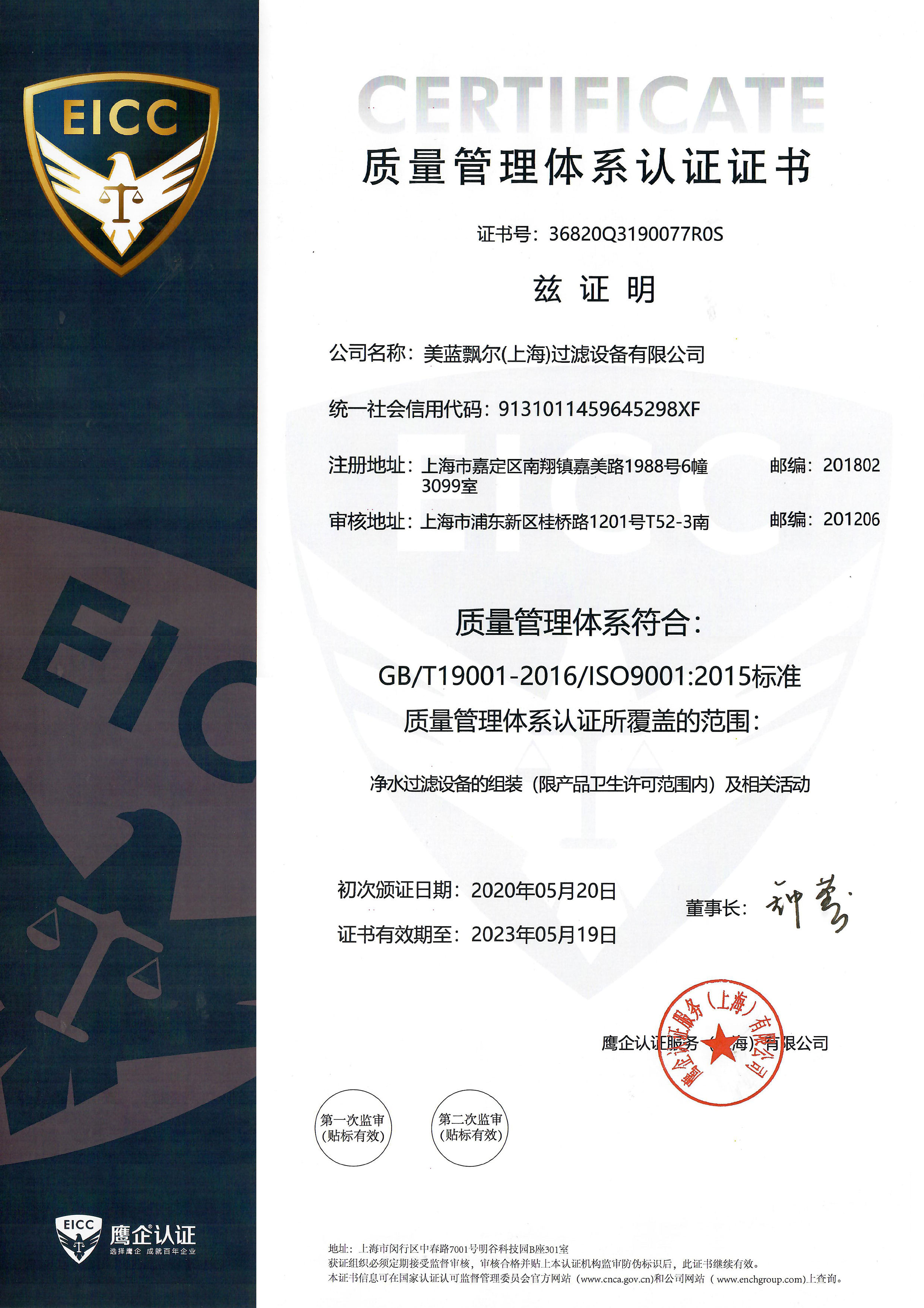 疫情當前,我們深深懂得環保健康的凈水產品對家的重要意義,消費者們最為關心的也莫過于環保和安全問題,公司凈水過濾設備全部通過最嚴苛的ISO14001環境管理體系認證和ISO9001質量管理體系認證,這樣官方的認證,不僅是對藍飄爾產品最權威的肯定,也是對所有信任和支持我們產品品質的小伙伴們最好的回應!
